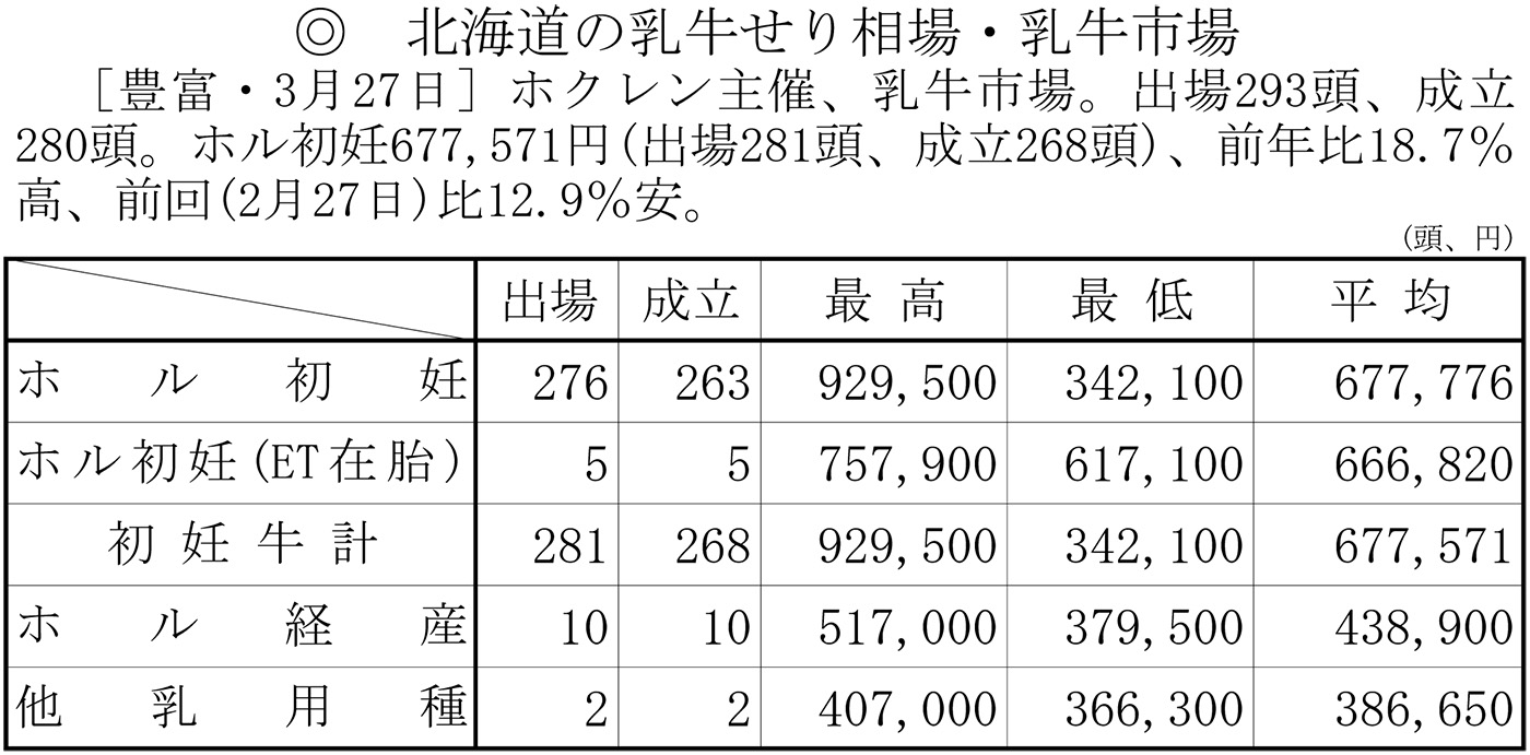 北海道の乳牛せり相場・乳牛市場(豊富・3月27日)