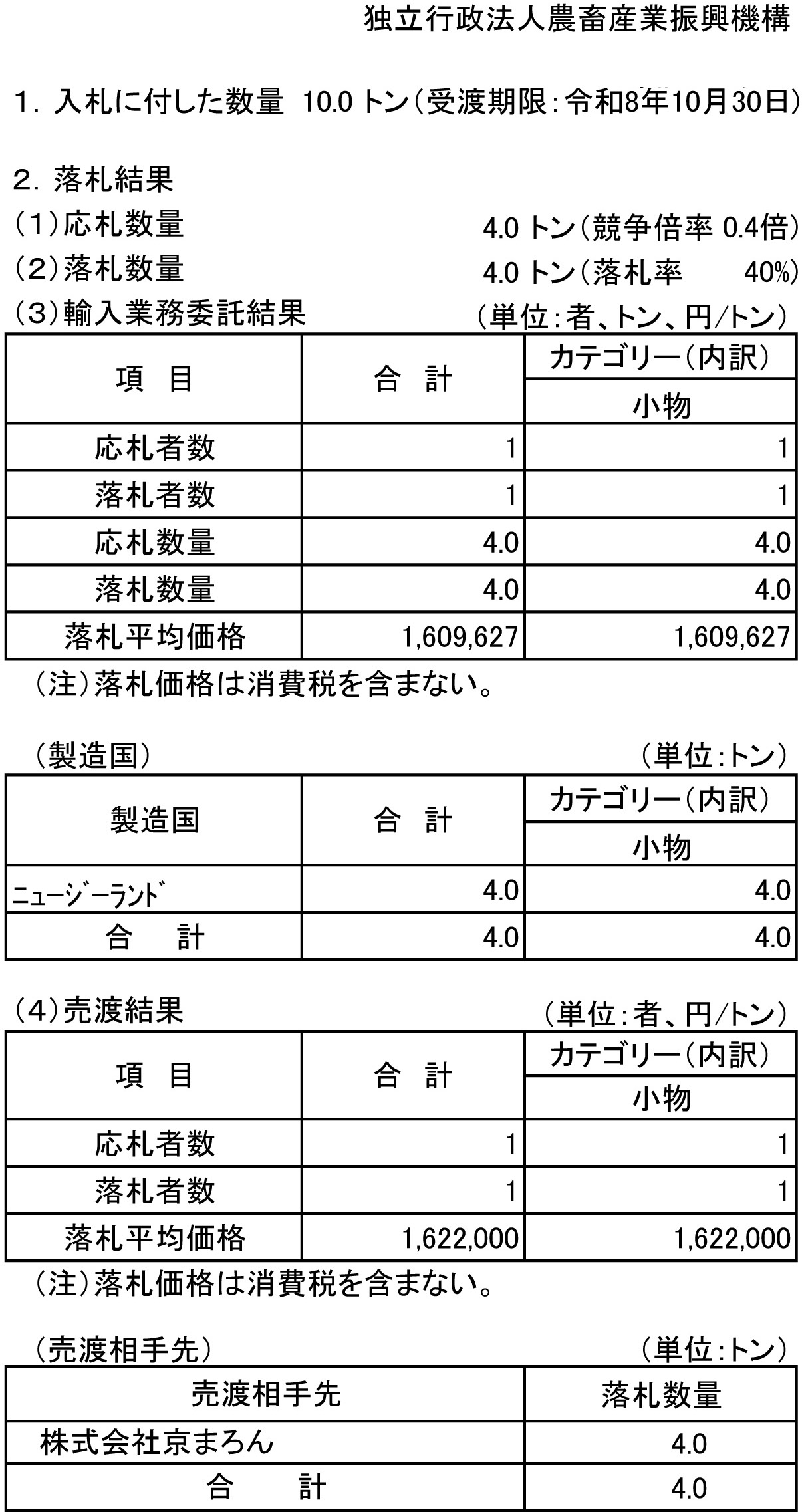 小規模企業者向けバター売買同時入札(SBS)結果・4月23日